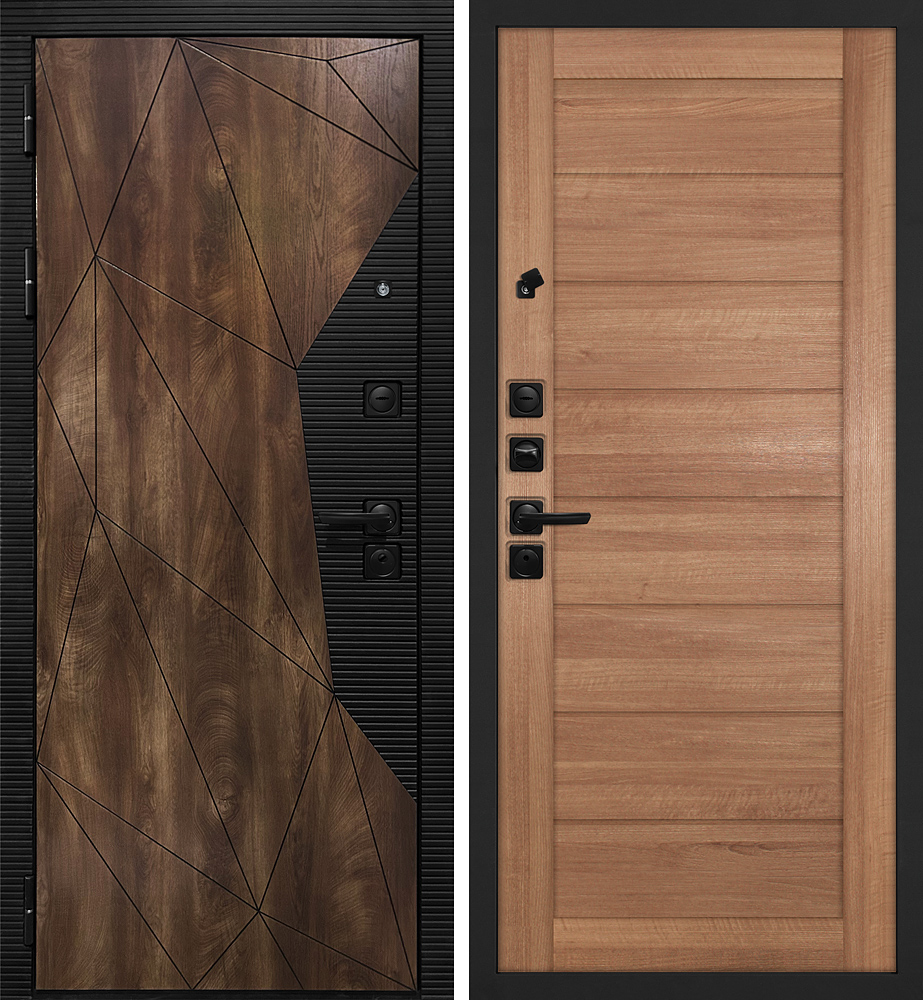 Фрезер. панель с выборкой под фурнитуру рис. "СБ-101" , МДФ-10мм, цвет:Дуб коньяк с век. Кольцами +патина/Кварц черный¶Наличник фрезеров. мдф 70*10 м